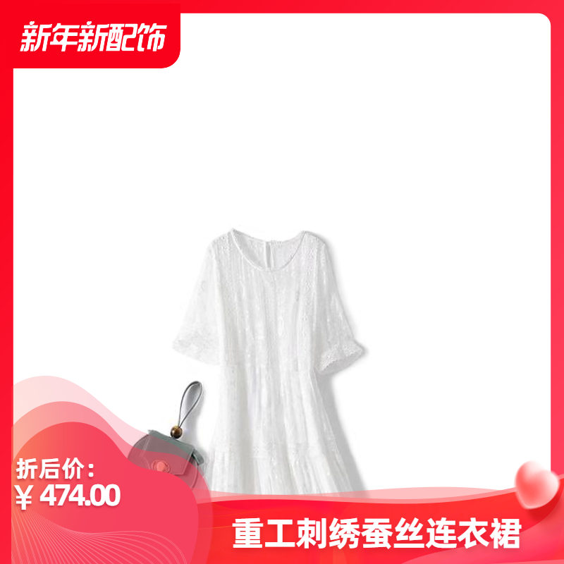新款女装重工刺绣桑蚕丝中长款气质修身 真丝连衣裙