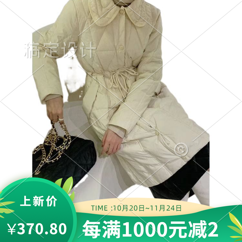 羽绒服女 新款秋冬季白鹅绒韩版长款系带娃娃领外套