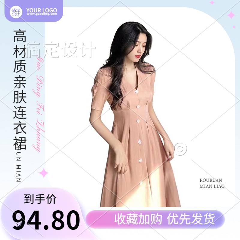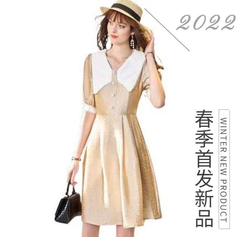 欧货时尚洋气娃娃领连衣裙女2021年夏季新款 气质收腰泡泡袖a字裙
