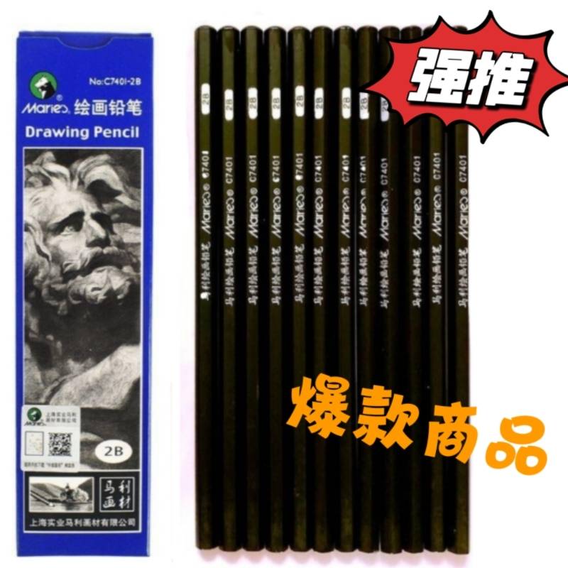 马利铅笔官方正品素描绘画美术生专用不易断铅速写初学者入门专业级2B款一盒特惠装