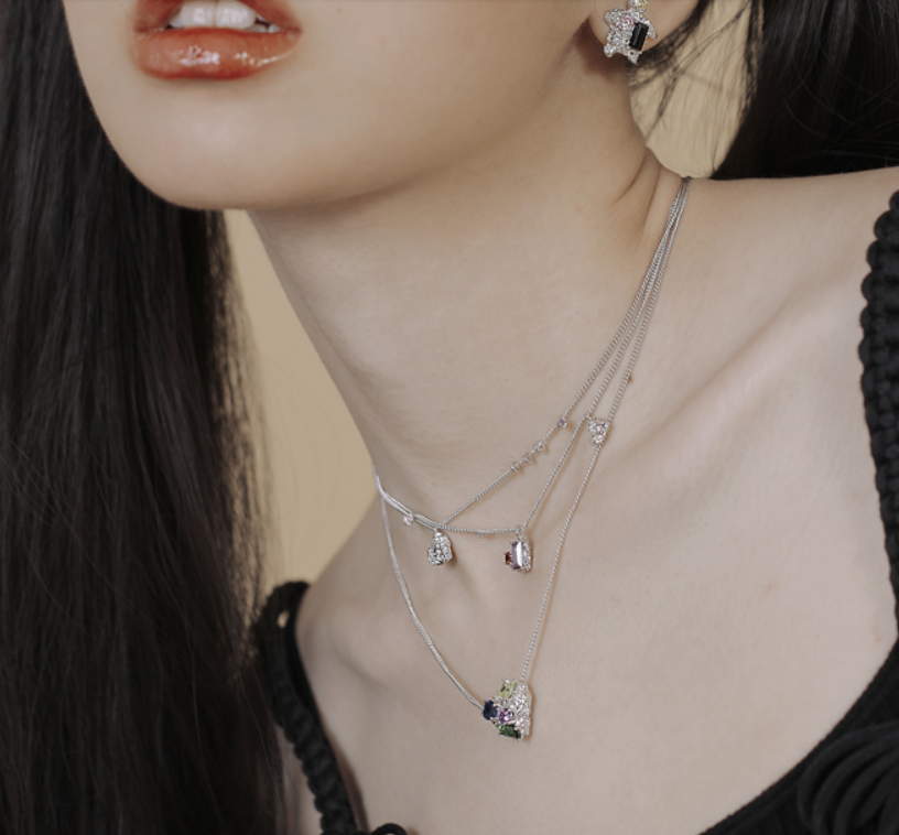 甜食系列宝石爱心组合双层锁骨链 925银心形项链 113.00 已售:1件