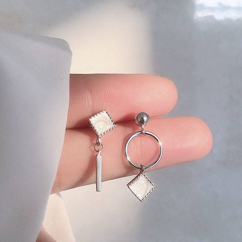 s925银几何不对称耳钉耳环气质高级感耳坠耳饰品