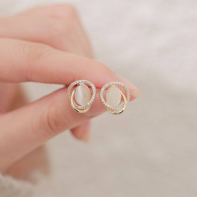花迹猫眼石耳钉s925银针耳饰女个性气质高级感小耳环