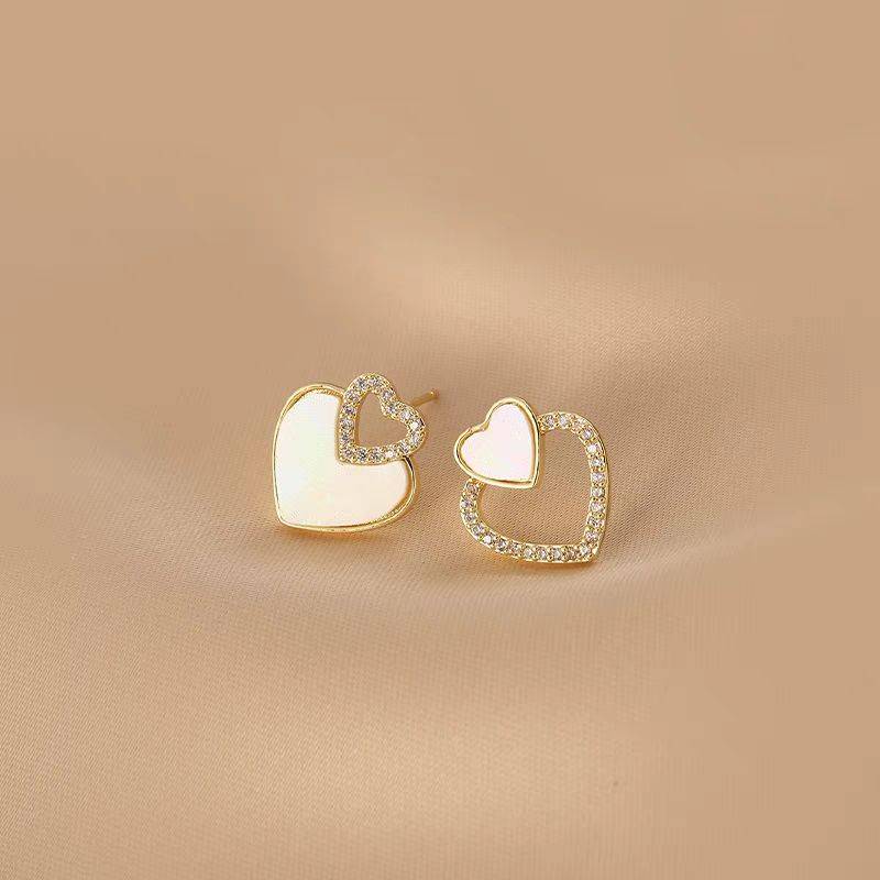 超仙白色桃心不对称耳钉~高级感ins气质耳环初春新款耳饰女潮新款