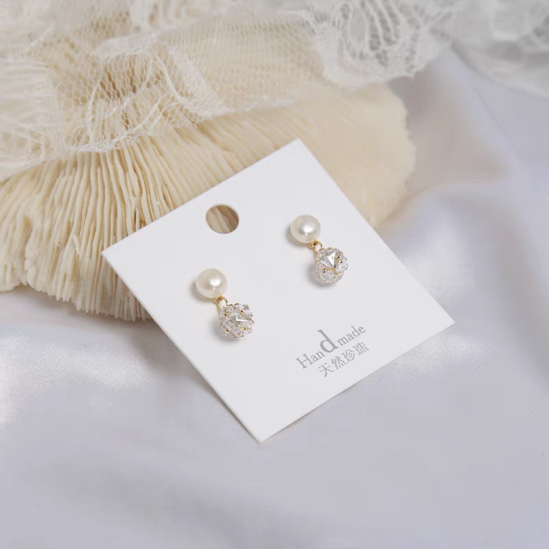 单颗水晶球天然珍珠耳环女简约甜美气质超闪s925纯银针耳钉耳饰