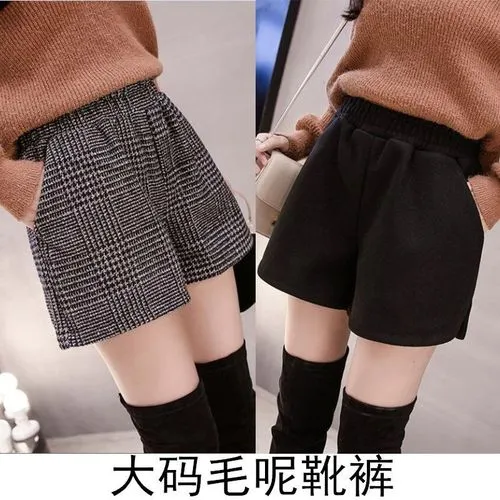 短裤女秋冬款外穿冬季2021新款毛呢黑色高腰爆款阔腿冬天打底