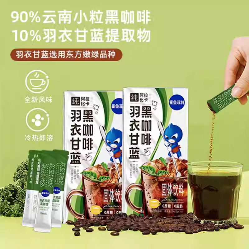 黑咖啡生椰无蔗糖0脂肪减羽衣甘蓝提神冷热萃取肥冰美式鲨鱼菲特