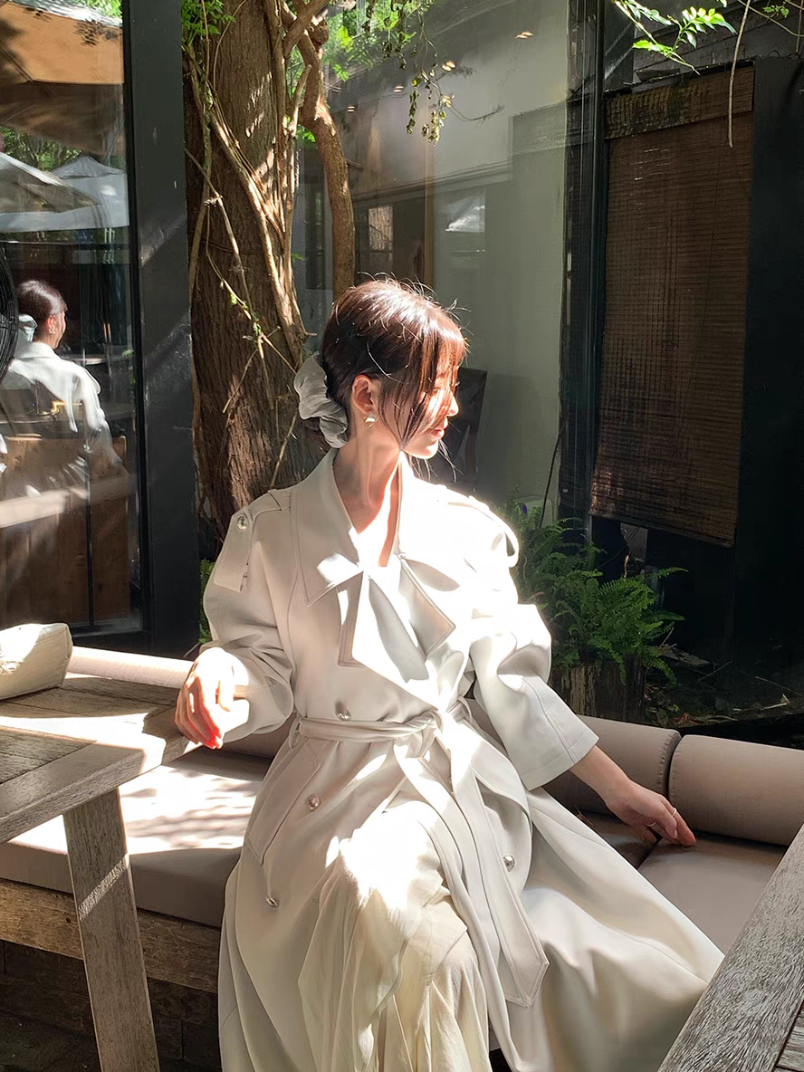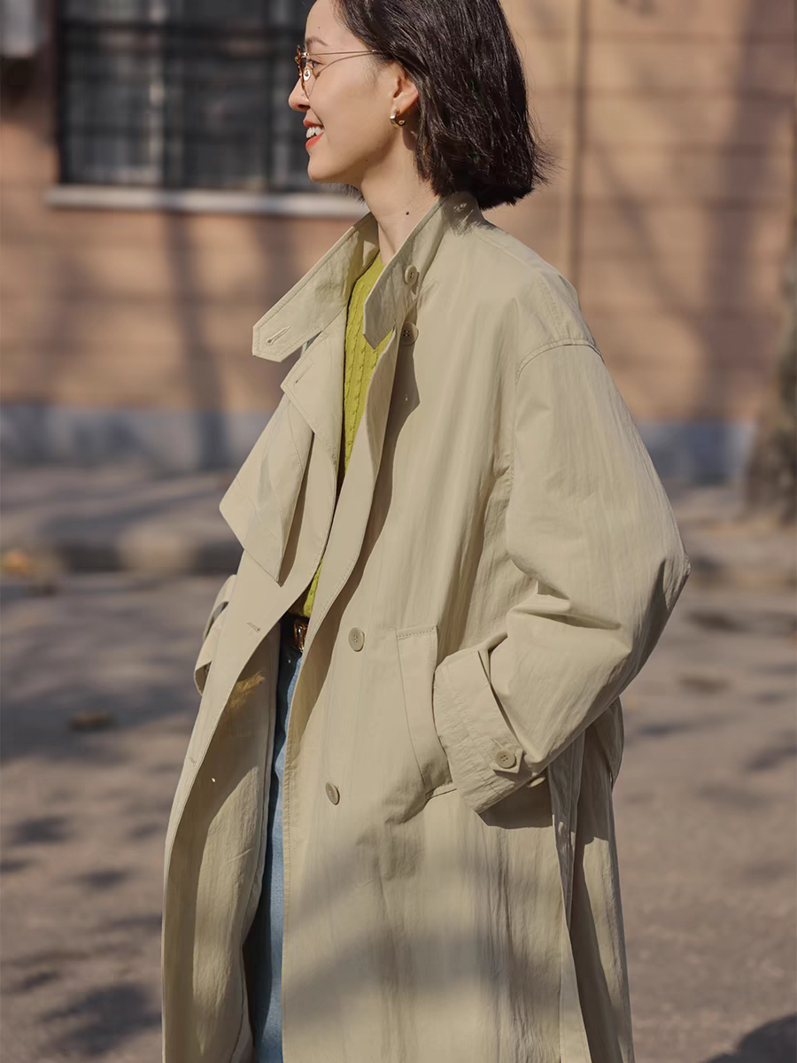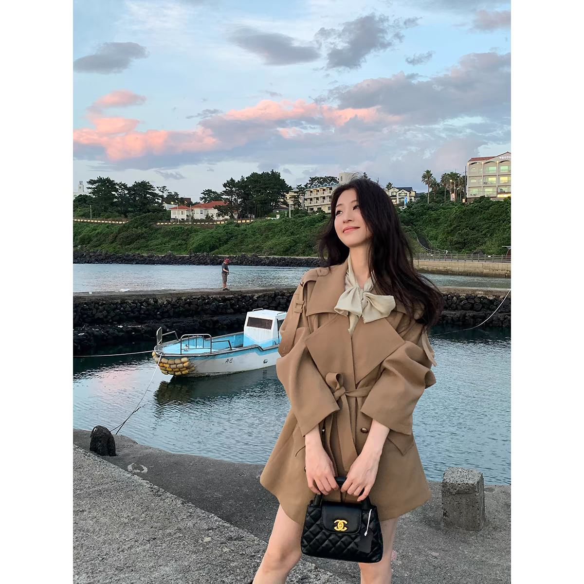 今年流行韩系高级感小个子高端灰绿色中长款毛呢外套女款2024新款
