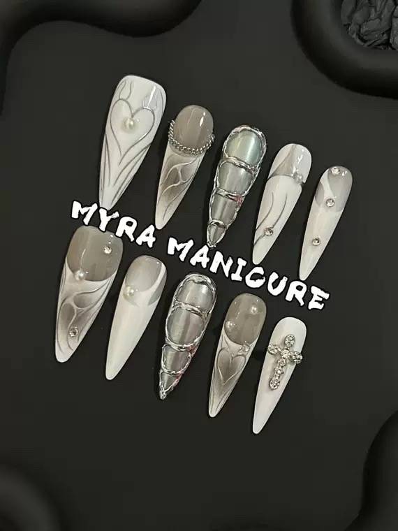 千禧辣妹白色系金属重工亚逼欧美穿戴甲