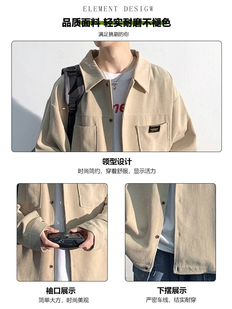 Ananterr 灯芯绒翻领衬衫男潮牌ins港风痞帅长袖衬衣日系复古外套