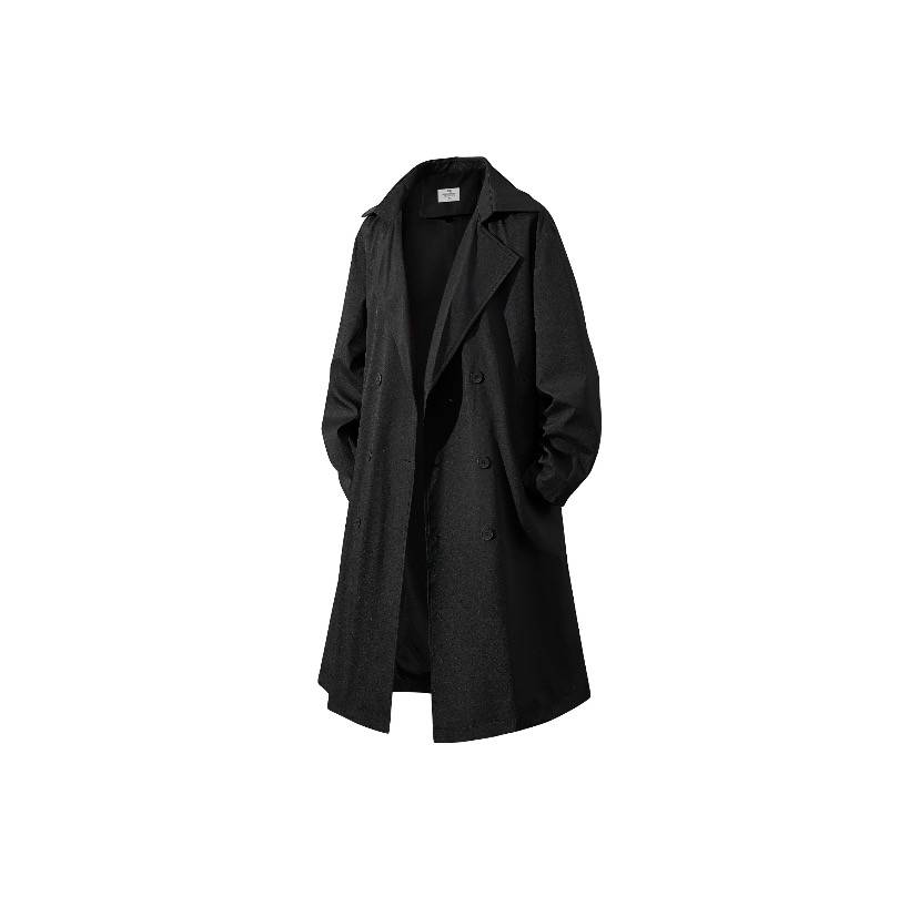 Crayon Shinchan蜡笔小新 纯色卡通logo小标休闲宽松双排扣V型翻领长版韩系风衣外套 男女同款