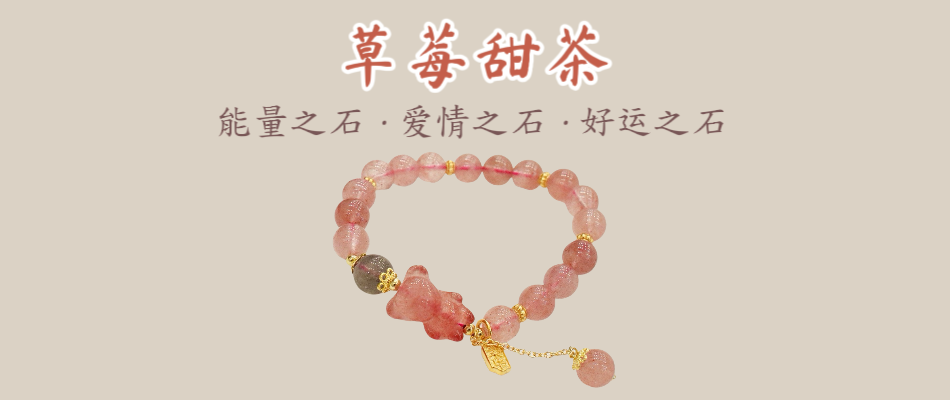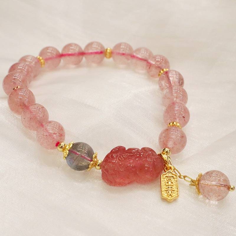 超仙天然草莓晶ins风小熊貔貅兔子手串灰月光真金电镀手链手饰品