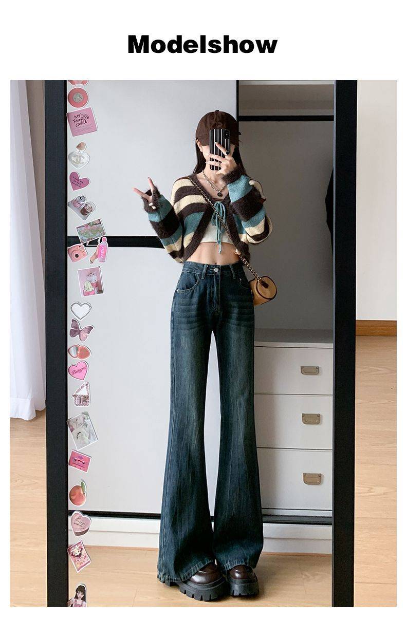 复古微喇牛仔裤女春秋2024年新款梨型身材高腰显瘦港风马蹄喇叭裤