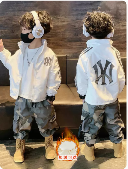男童外套套装秋冬2023新款痞帅气加绒儿童洋气春季运动男孩两件套