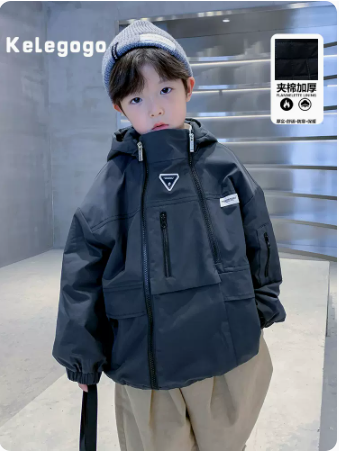 男童外套秋冬款2023新款儿童冬季夹棉加厚冲锋衣中大童保暖夹克潮