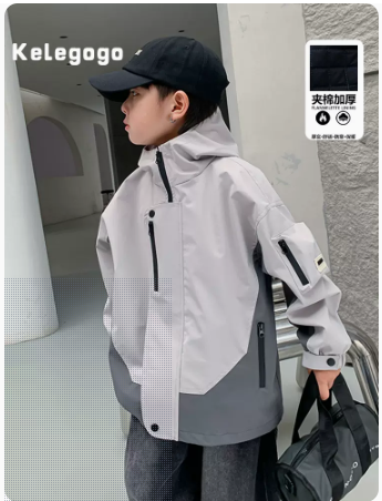 童装儿童冲锋衣大童男装2023新款男童冬装外套帅气派克服