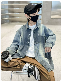 男童牛仔外套痞帅春秋2023新款潮酷大童男装衣服秋季儿童秋装上衣