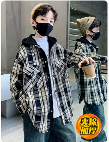 男童毛呢格子外套夹棉加厚秋冬款2023新款潮儿童大童男装冬装上衣