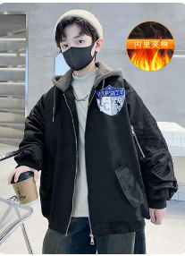 男童外套儿童秋冬款2023新款夹克棉服冬季夹棉加厚连帽帅气上衣潮