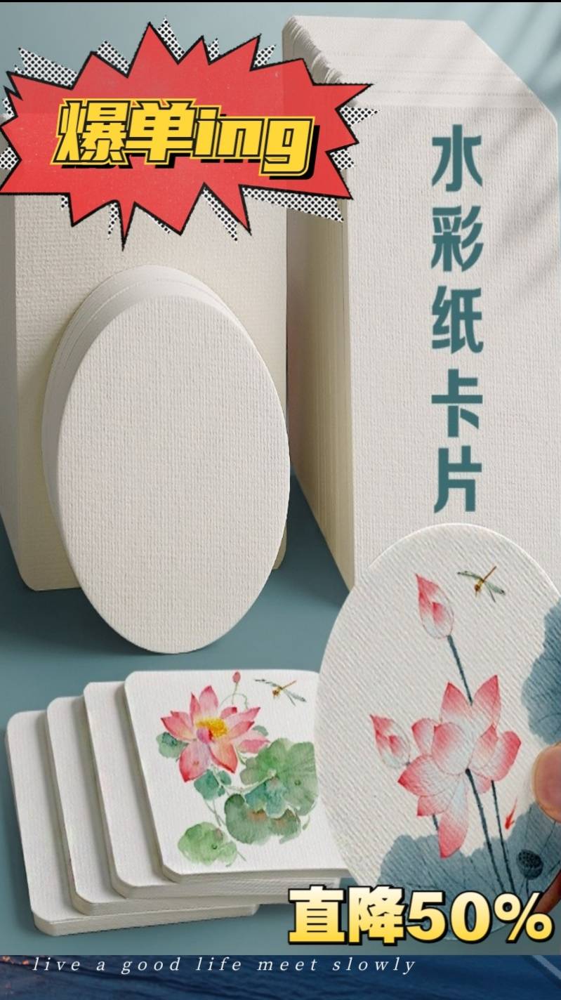圆形明信片手绘正方形水彩纸美术加厚300g粗纹木浆书签空白卡片