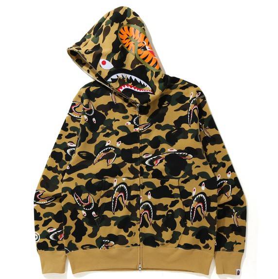 BAPE男装春夏WGM字母贴布鲨鱼迷彩图案连帽拉链卫衣115009G