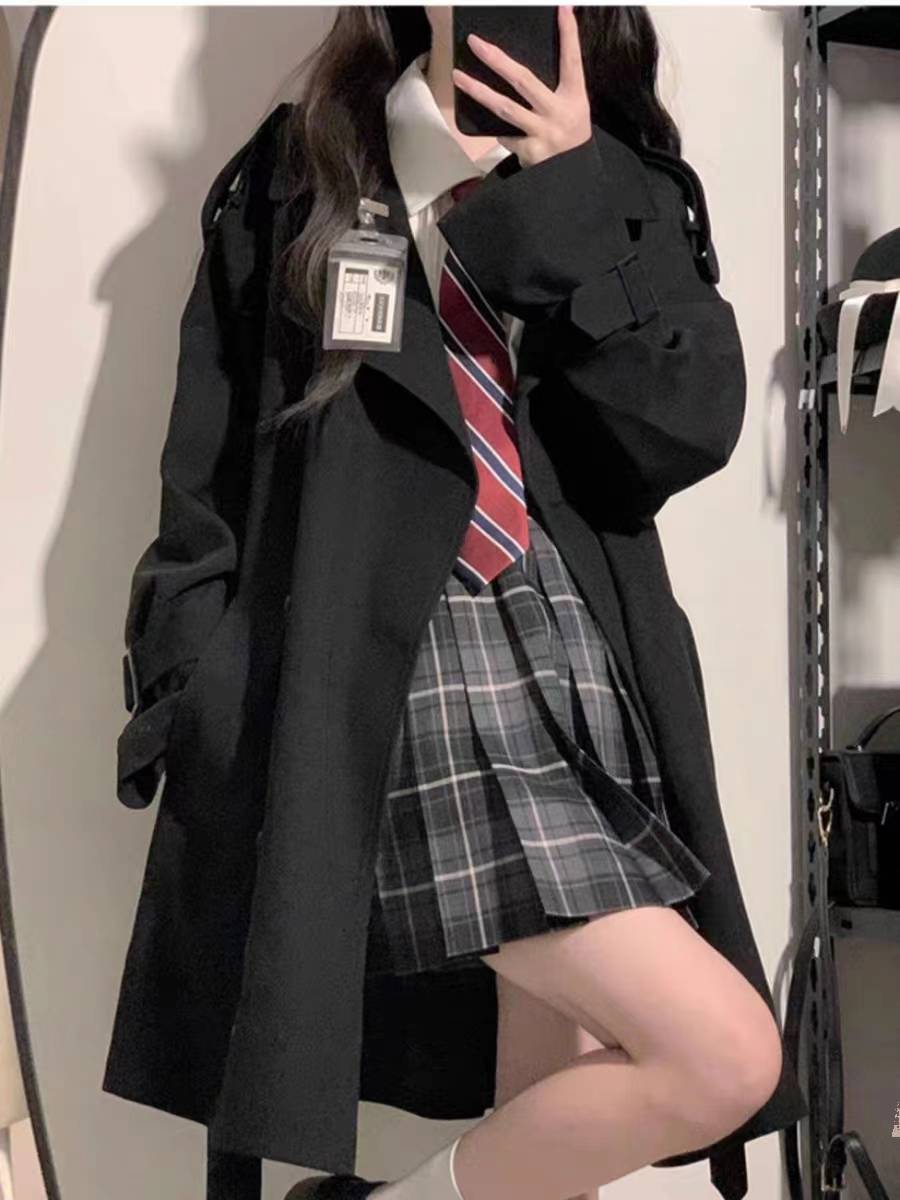 风衣女2023春秋新款韩系高级感黑色英伦风中长短款大衣外套