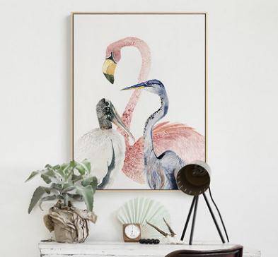 竖版玄关装饰画过道动物北欧火烈鸟壁画餐厅挂画卧室ins