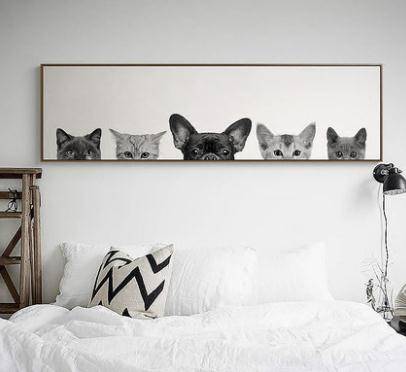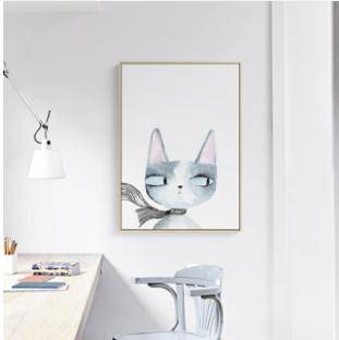 北欧风格动物客厅装饰画 现代简约卡通挂画卧室壁画墙画床头画猫
