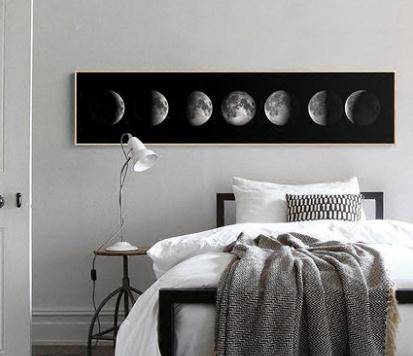 月球 黑白摄影卧室装饰画 现代简约床头画挂画工业风