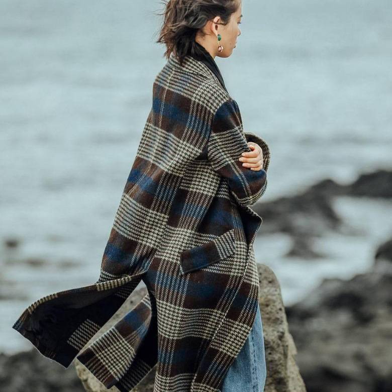 ZOJ手缝羊毛双面绒外套格子大衣女西装新款秋冬毛呢女装