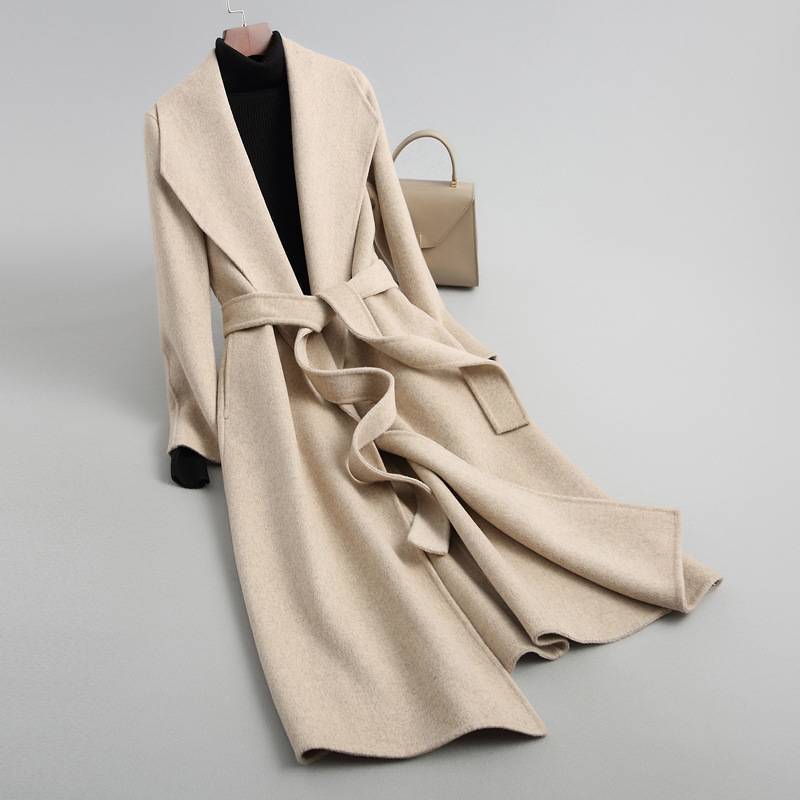 2019新款毛呢外套女装中长款小个子双面呢羊毛绒大衣腰带显瘦