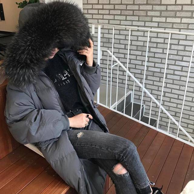 2018过膝大码新款羽绒服女中长款韩国宽松超加厚大毛领时尚韩版潮