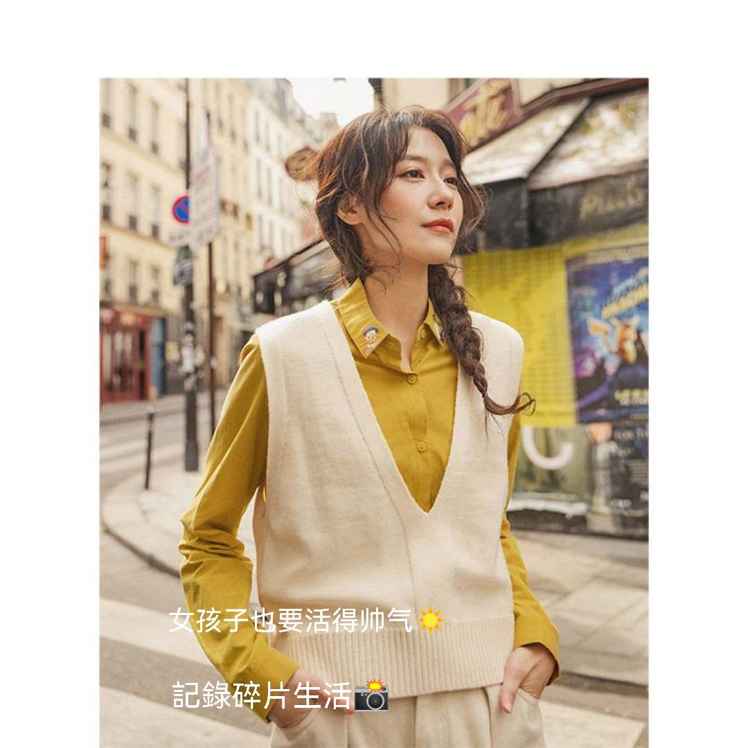 2021秋季新款无袖短款初恋毛衣背心马甲女外穿v领学院风宽松