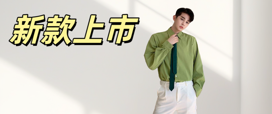 2020耐看复古绿衬衫简约配领带撞色休闲衬衣男士春夏宽松寸衣百搭