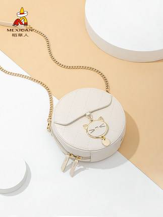 稻草人女包2021年夏时尚百搭欧美潮流小清新小猫单肩斜跨链条小方包