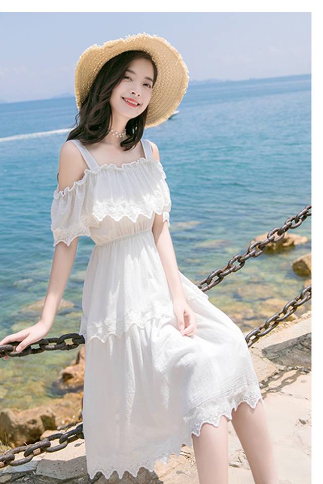 2021新款夏季女白色吊带连衣裙