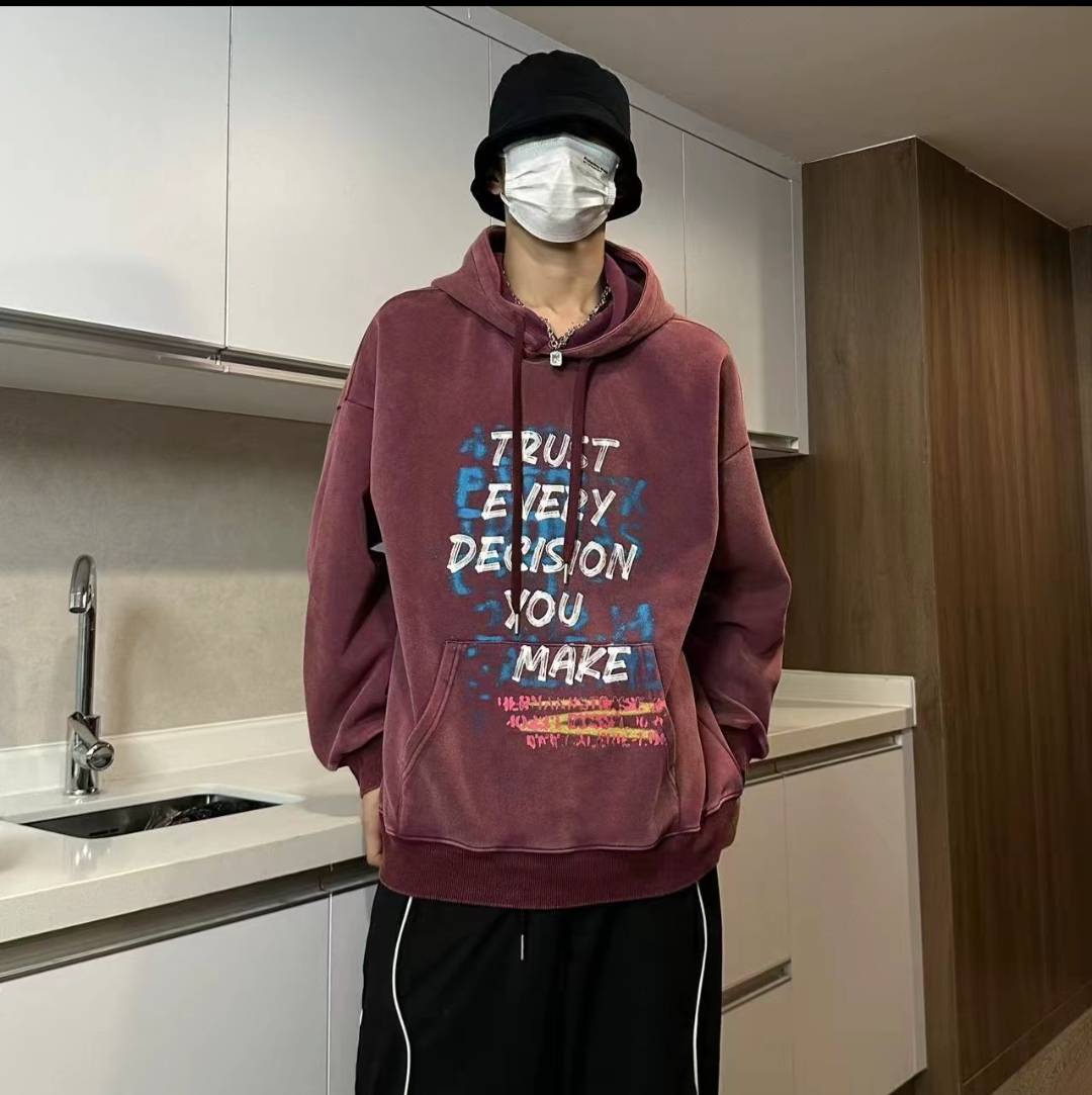 秋季新款水洗字母印花连帽卫衣