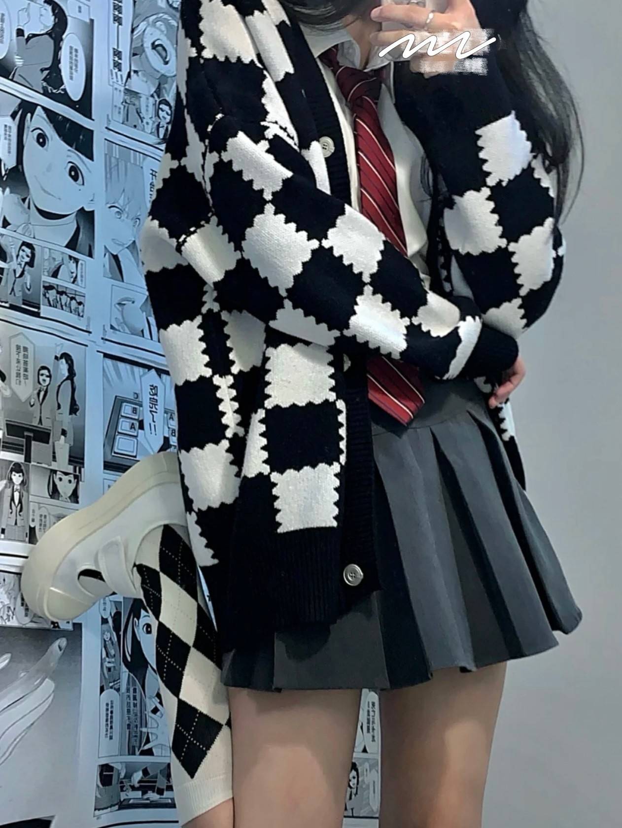 物质女孩格纹大衣女2021年新款春季复古直筒宽松温柔翻领毛呢外套