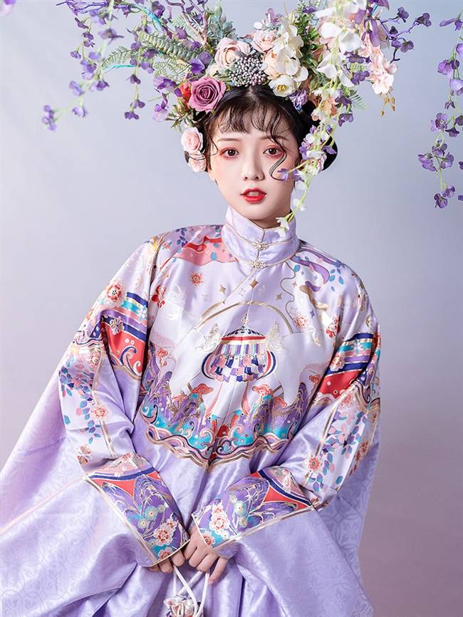 立春 明制立领对襟短衫琵琶袖缎面贴边异色领汉服女装