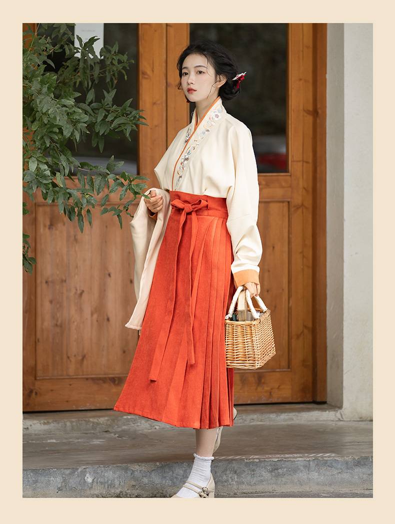 【琼花瑶】汉元素齐腰马面裙长衫秋冬改良中长裙