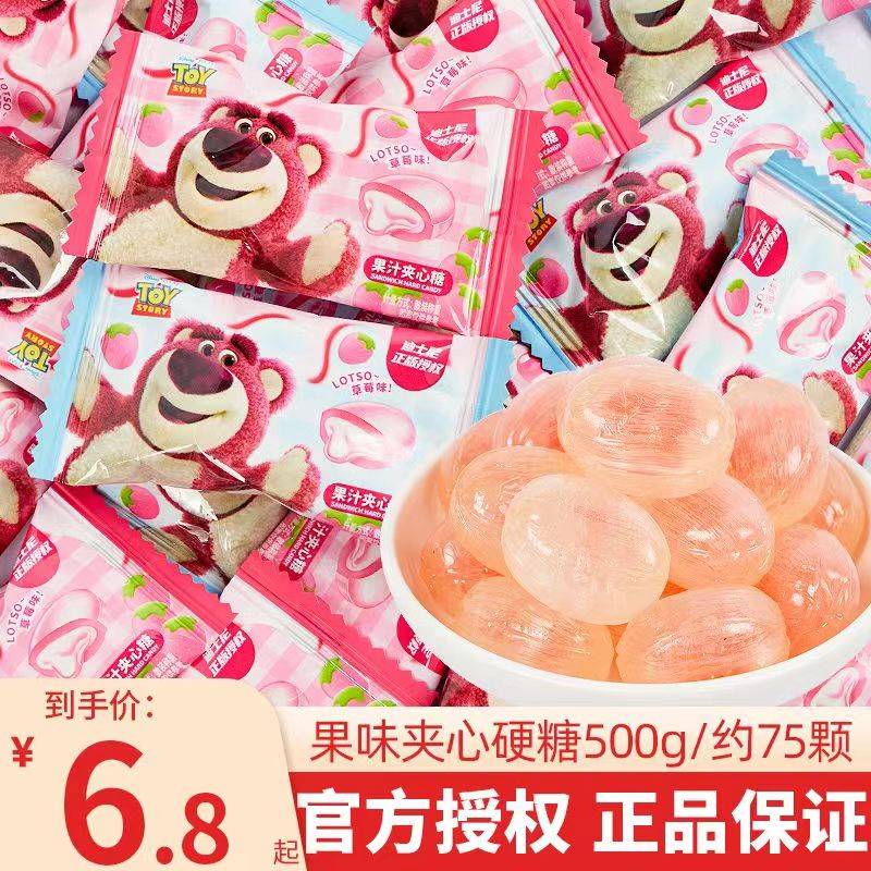 迪士尼草莓味果汁夹心硬糖草莓熊水果糖结婚订婚高颜值喜糖果年货