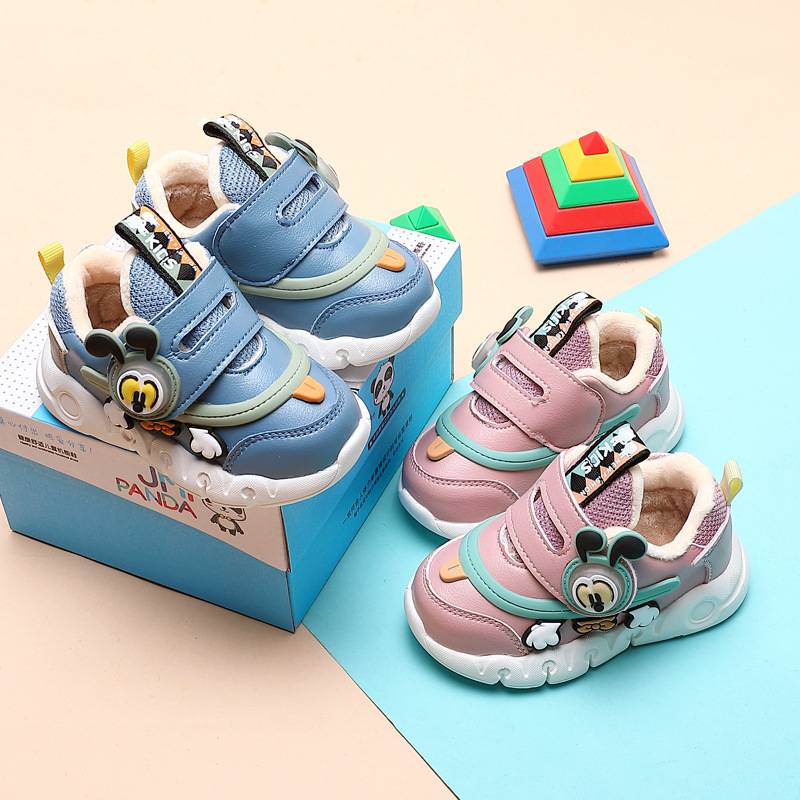 几米熊童鞋冬款 卡通皮面加厚运动鞋 宝宝亮灯学步大棉机能鞋