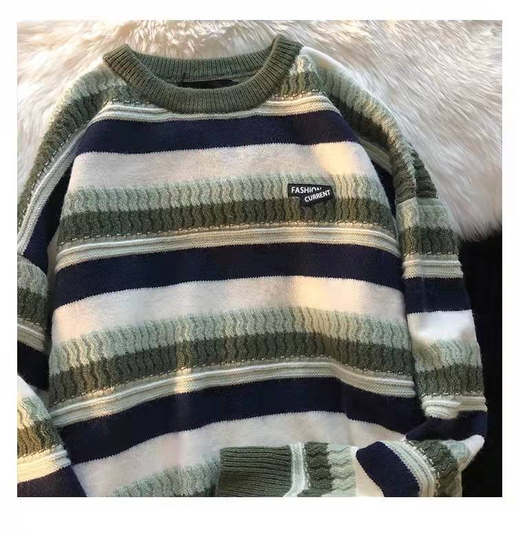 古着毛衣vintage女春秋复古日系慵懒宽松Jew4room港风条纹针织衫