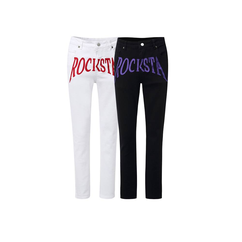 ROCKSTA2022 街头摇滚朋克黑色/白色刺绣SKINNY风格修身牛仔裤2.0