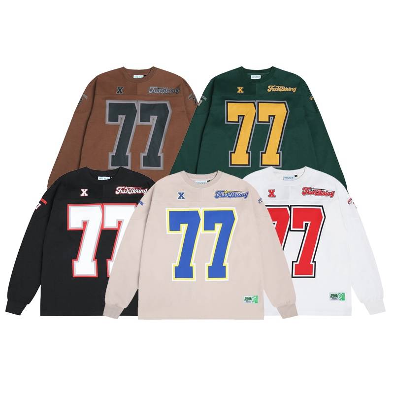 WILDX 脉冲系列 美式冰球服77号原创复古橄榄球情侣国潮长袖卫衣