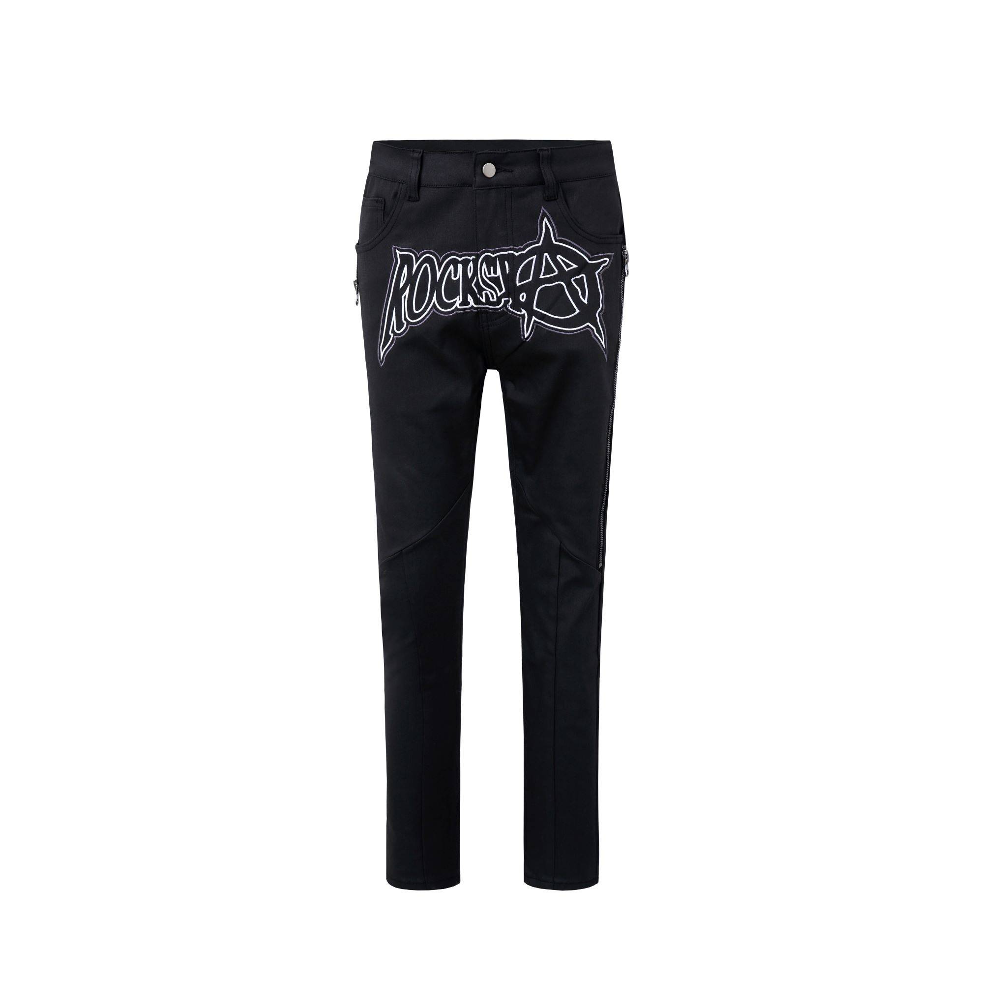 ROCKSTA2022春夏黑色侧口袋拉链休闲微弹刺绣刷蜡处理牛仔裤蜡裤