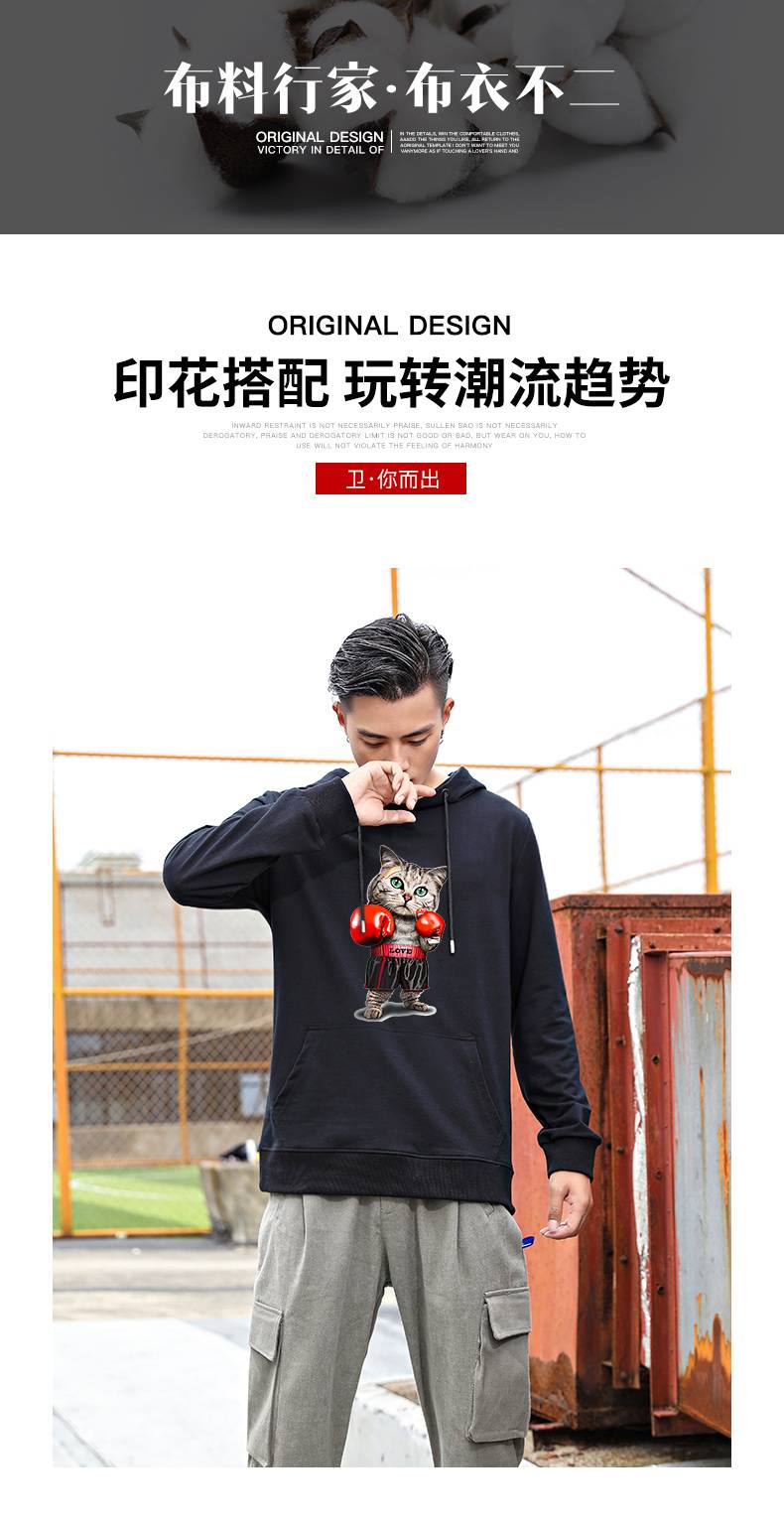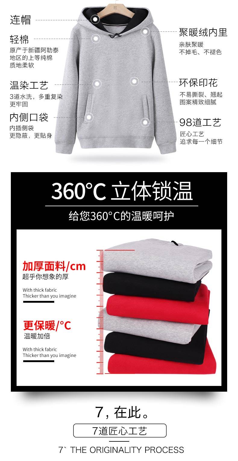 宽松连帽卫衣男加绒加厚 2018新款冬季欧美纯色套头帽衫1折