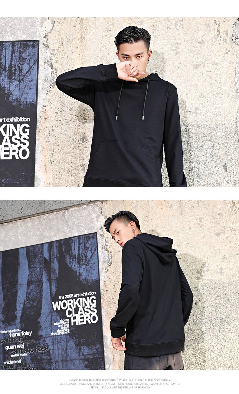 宽松连帽卫衣男加绒加厚 2018新款冬季欧美纯色套头帽衫