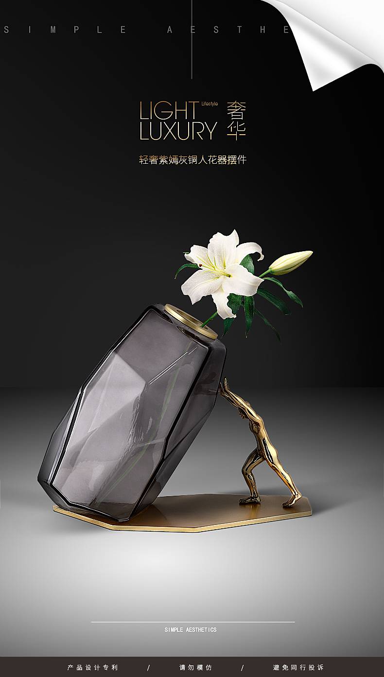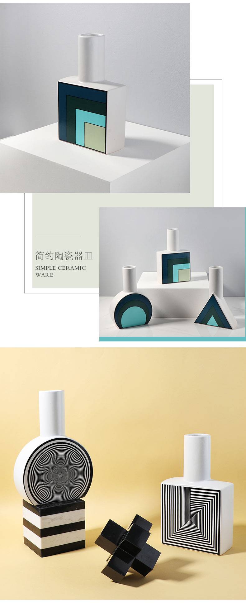 现代简约北欧几何花瓶摆件样板房售楼处客厅软装饰品创意花器摆设