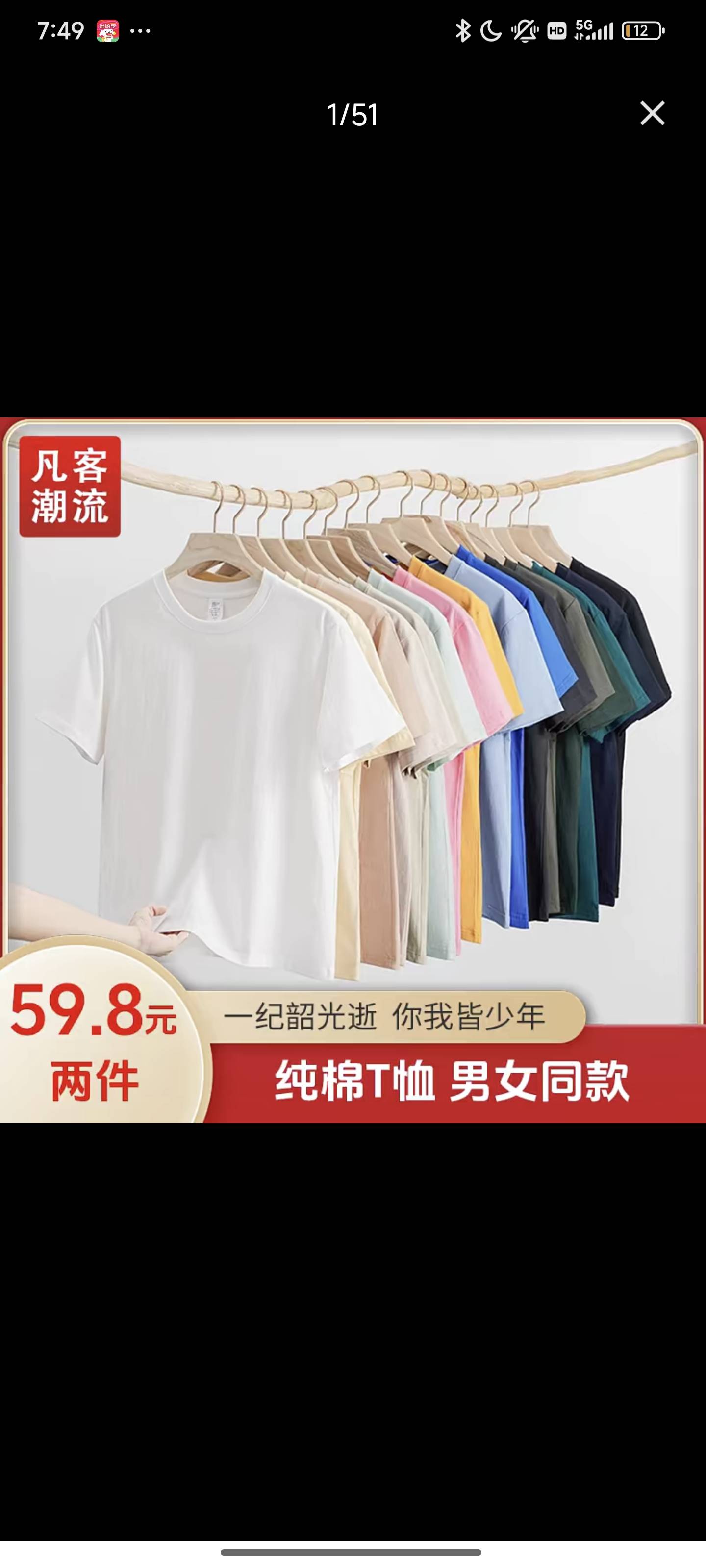 凡客潮流240g纯棉短袖T恤两件装亲 肤舒适时尚纯色圆领百搭打底